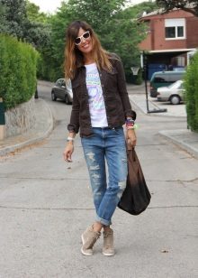 Most interesting look jeans and trousers with lapels, due to which a distance is created between the leg and shoes, exposing the part of the ankle, which looks very gentle and sexy.