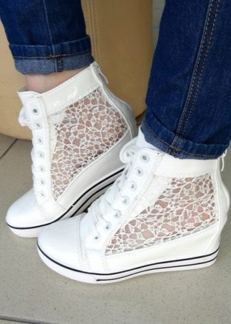 Sneakers on the platform - the most common and favorite model of girls, because they sit on their feet like shoes, adding a few centimeters in height and visually making the silhouette more slender.In some images, such a Sneakers model can become a worthy replacement for shoes.