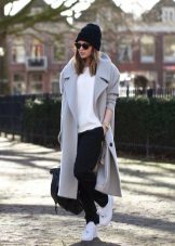Stylists recommend wearing sneakers with pants or leggings in the same color scheme. In this way, you can visually lengthen the legs.
