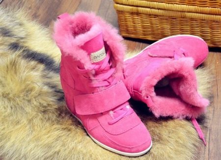 The most popular type of winter sneakers are sneakers with natural sheepskin fur. Such a model will certainly become a woman’s best friend in the cold season. The product can also be with a fur trim, which looks not only interesting, but also elegant. This type of sneakers will be perfectly combined with the classic and, even in some cases, with a business style.