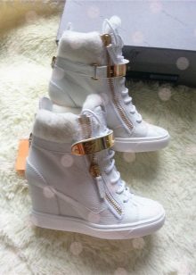 Sneakers on a platform sole are ideal for a bright image, since they can be combined with youth clothing. Models with fur trim allow you to create an unforgettable thematic image.