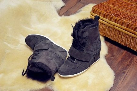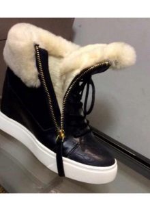 French designer Isabel Marant creates delightful models of winter sneakers that are feminine. They have wide lapels from long-fur. Models have a high zipper as a fastener. Decorative lacing gives charm and beauty.