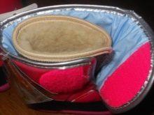 This model has only two snowboats - pink and blue, for girls and boys. The material from which the outer side of the boot is made does not leak moisture and is resistant to dirt. On the rise - a wide elastic band that fixes the shoe exactly on the foot. The inner layer of sheepskin is turned upside down.