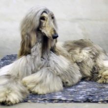 - Wool. Long soft wool is the pride of representatives of this breed. Short hairs cover the muzzle. From the forehead line, the hair gradually lengthens, resulting in a kind of “hairstyle”. The back area also has a shorter coat. Ears, neck, belly and paws are covered with silky long hair. Oddly enough, such a luxurious “hair” does not at all prevent the animals from actively moving. It is known that when running, an Afghan can reach speeds of up to 50 km / h.