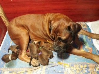 The number of babies in the litter will increase by the age of the female in 3-4 years, after which it will decrease again. Determining that a dog is pregnant is not always easy. The fact that the female carries puppies will become noticeable not in her appearance, but in behavior. The animal behaves calmer, more affectionate, requiring a good attitude and attention to itself. It may even seem that Boerboel is not quite healthy.