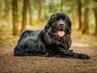 Newfoundlands belong to huge dogs and can reach a weight of 60 kg, but despite this they are incredibly good-natured and calm. They can fulfill the functions of both a family guard and a nanny for a child. They have a long thick coat of dark and white color, which requires daily care. And also Newfoundlands are characterized by profuse salivation.