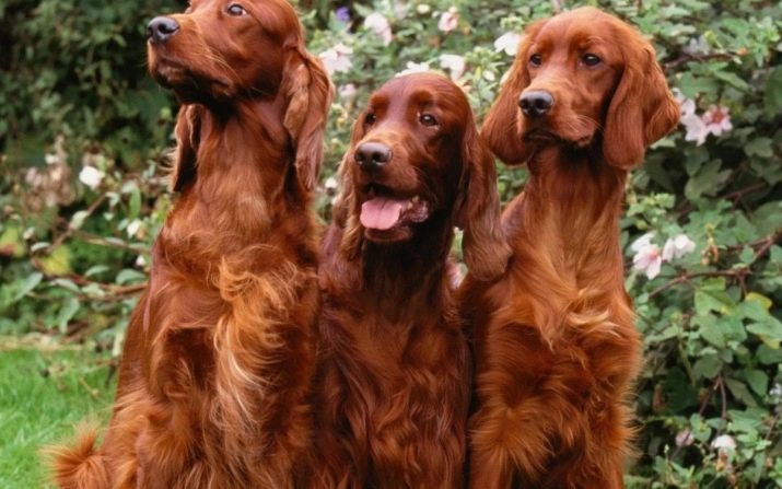 Irish setter - An active and cheerful dog with good manners will become a reliable companion for many years. A great companion for a young active family. A distinctive feature of the breed is a bright silky hair falling in waves. Often the Irish setter participates in promotions and is very popular with various world stars.