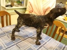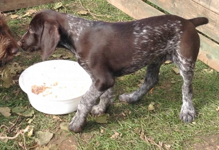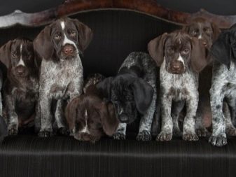 Appearance of puppies of a German Pointing Dog is quite original. Toddlers have a big head, a typical body for babies and a guilty look. Sometimes it even seems sad, the forehead is slightly elongated, the paws seem large, but in general his physique is proportional. By 1.5 months, puppies quickly gain weight, and in some individuals at the time of purchase it is from 6 to 10 kg.