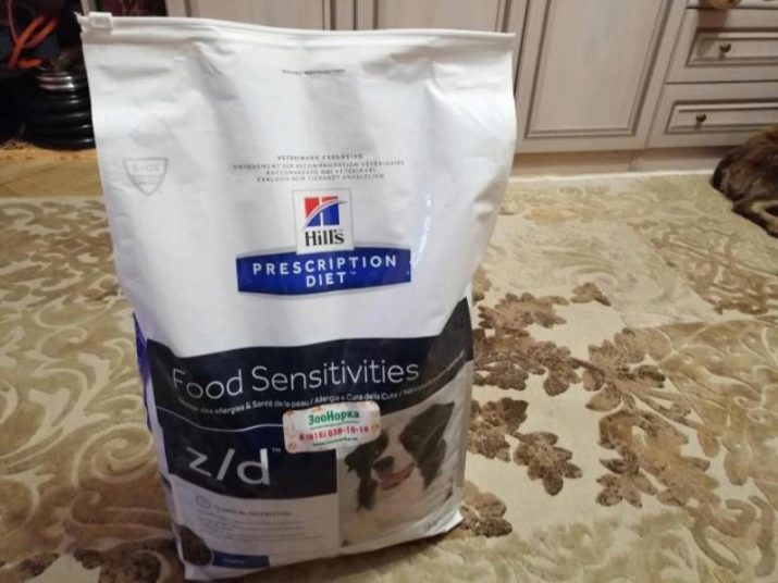 - Hills. Food recommended for food allergies. However, it contains chicken components. If the animal does not tolerate chicken meat, then it is not recommended to buy such food. The mixture can be used for pancreatitis, it normalizes digestion. Food is recommended for medium and large breeds. There are 2 species: salmon and duck.