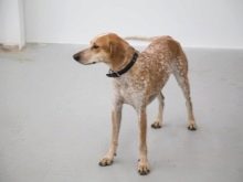 A rare breed bred in France is considered a porcelain hound. The animal is used to hunt hares, roe deer, and wild boars. In height, the dog reaches from 53 to 58 cm and weighs up to 30 kg. The second name of the breed is considered to be porcelain, this pet has a proportional physique, long legs. The skull is elongated.