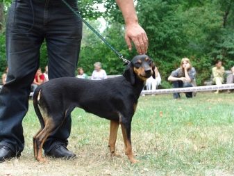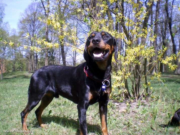 Such a pet weighs 20 kilograms. The hair of the animal is colored black, tan marks are present with a sharp restriction. The hairline is shiny, even and hard.