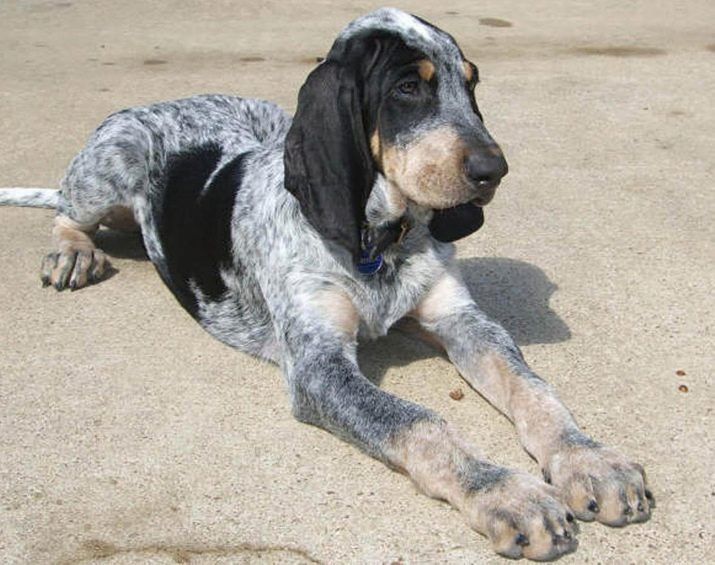 The little blue Gascon hound has blood of bloodhounds in its veins. The growth of the animal can reach no more than 0.5 m, while weighing 20 kg. The small dimensions of the pet allow him to be as mobile as possible. On the long head is a black nose with open nostrils. The skull is characterized by a plane, it is narrow.