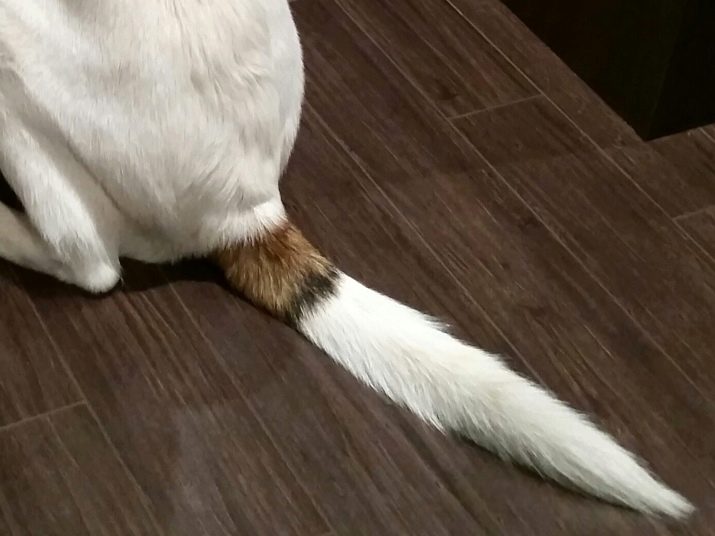 The brown eyes of the dog have black eyelids. The ears are conical and thin. The tail is characterized by a large length and thinness, and wool - stiffness and shortness.