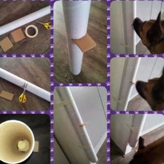 If a pet likes to bite and crush everything, then he needs a wear-resistant toy. Such options need to be made from pieces of polypropylene pipes with plugs. It is enough to make a hole in the body of the tube and put dry treats there. As a result of the game, goodies will gradually fall out.