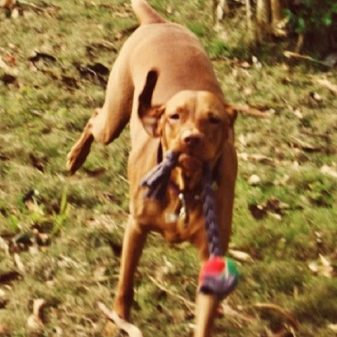 Big pets need special toys. And it's not only the size, but also the strength. Use safe materials so that the dog is not injured or poisoned if the product breaks. You can give the dog to be torn apart by a homemade soft toy or ball, which is enough for a couple of days. It is worth remembering that any game should not only amuse, but also develop a dog.
