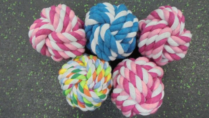 Interesting options for toys will become not only good entertainment for the dog, but also a kind of decoration.In the manufacture of toys, you can use fabric decorative elements or beautiful fabric - the product will become unusual. The ball from a tight rope looks rather curious. Such a toy cannot be broken or ruined. If the rope ball loses its shape, then it is quite simple to twist the structure.
