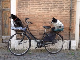 There are several devices for cycling dogs: a basket, a bag for dogs, a trailer, and even a saddle. It is not recommended to use a regular bicycle basket, as it is rigid, and the pet can jump out of it. For dog riders, there are also several options for how to ride your pet with the wind. Large dogs are seated in a stroller or trailer.