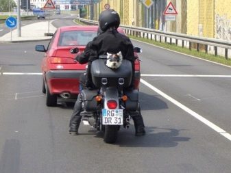 To hold a small animal on a motorcycle, there is a good arsenal of tools. It can be a backpack or a child’s chest carrier. You can put your baby in the bosom. If we talk about special equipment, then they include the central case, a bag on the trunk or on the tank.