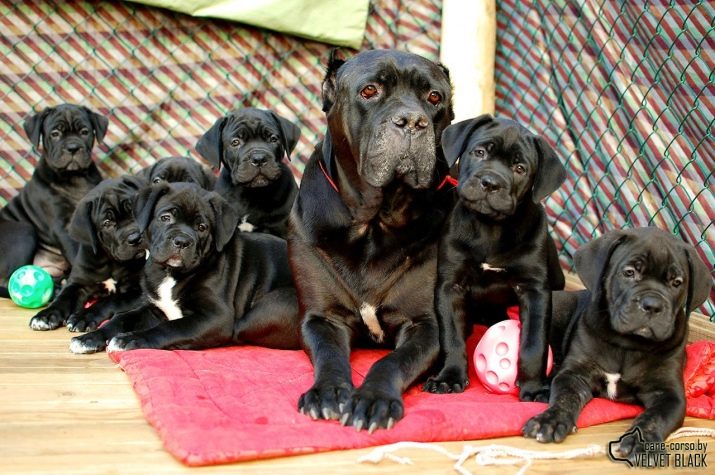 Pregnancy in Cane Corso lasts only 9 weeks. During this period, the diet should be changed only a couple of weeks before birth. In order not to purchase vitamin supplements separately, it is easier to pick up a special balanced feed in the pet store, the contents of which contain all the necessary components. Servings should be increased daily. In the first 7 weeks, the pet should be fed as usual.