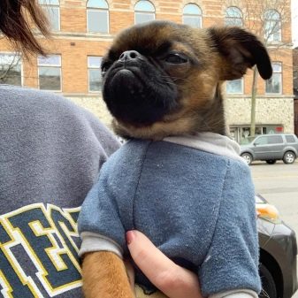 Mobile and very active dogs, whose height does not exceed 28 cm, and the average weight is 4.5-5 kg. It is difficult to confuse Brabanson with anyone, since few animals have such understanding and expressive eyes. Pets are distinguished by a sharp mind and quick wit, are easily trained and listen well.