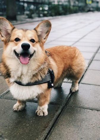 In rainy weather Corgi fluffy does not look too pretty. The absence of undercoat causes the dog to get wet instantly.