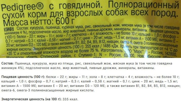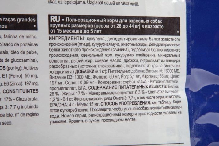 Thoroughbred dogs are not fed with economy-class food; there is little benefit from it. The composition is almost always present corn, bone, soy and fishmeal. Fat is described as simply animal origin, but which is not specified. There are salt, iron sulfate, zinc oxide and other harmful components in the list of ingredients.
