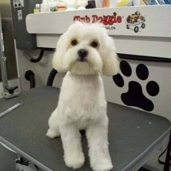 Cleaning your ears and often sour eyes is a must not only in the salon, but also at home. Ears are cleaned with a special lotion and a tissue. Eyes that often watery and sour (inheritance from maltese) are treated with an ophthalmic lotion applied to a napkin, or a decoction of chamomile or tea solution. On white wool, tear paths are still noticeable. If it’s fundamentally important for the owners that the dog has a perfect look, then the tracks are lightened with special powder or conditioner from the pet store.
