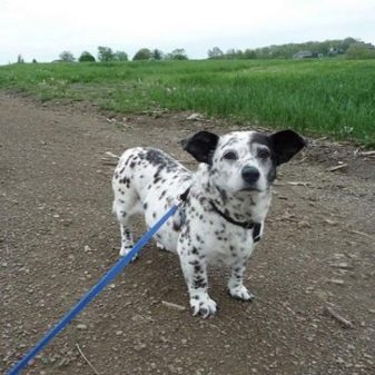 Colors can be very different, taken from one of the parents or mixed. For example, a pomsky may well look like a red Pomeranian fox-spitz, only a mask on its face will give out the ancestors of the husky. Achieving a rare color, the breeders mixed Weimaraner and Labrador, received a mestizo with silver coat. Unusual mestizos are tolmatins, they are endowed with a beautiful spotted color of the Dalmatians, but have a small, slightly elongated body, similar to a dachshund. Horgi can be found with a coloring and a husky mask and long corgi coat.