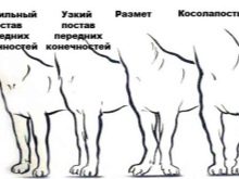 The legs of the animal are straight, their set is moderately wide. The limbs of the mittels located at the back are drawn towards the tail, the shoulder blades are closely pressed to the sternum, and the elbows are pressed to the body. The femur of the limbs of the dogs is elongated, muscular. The elongated tibia is saturated with veins, the hock joints have joints with optimal angles.