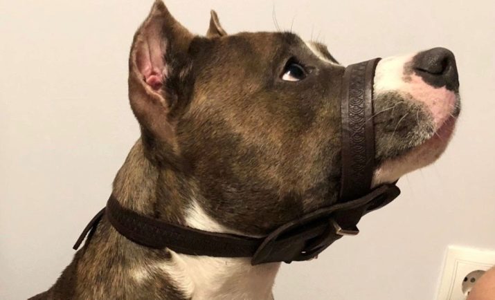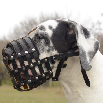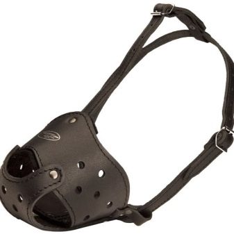 - Deaf muzzles, especially those made of thick leather, are reliable and durable protective equipment, but in no case put them on the dog for a long time. In addition, pugs, staffordshire terriers, boxers and bulldogs, such models are not at all suitable.