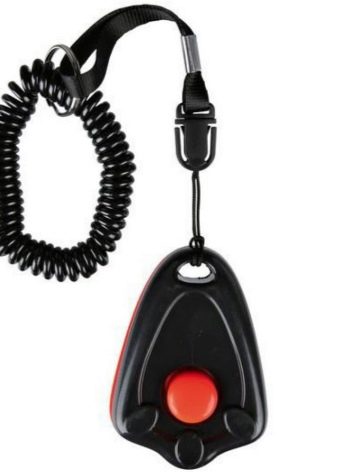 Together with the muzzle for the dog you need to buy such a thing as a clicker. The latter is a plastic keychain with a special metal tongue. At the time of compression, a clicking sound emanates from it. It is he who will serve as a signal for the pet to complete the required action. First of all, you will need to teach the animal to catch this click when receiving treats.