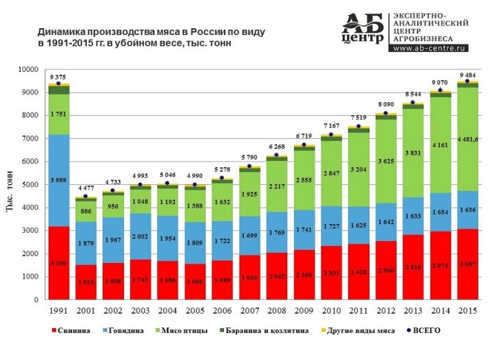 According to statistics from the Expert and Analytical Center for Agribusiness, the global production of different types of meat is in the following ratio (in decreasing order):