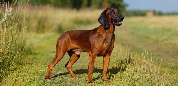 - Bavarian mountain hound. It was used for hunting back in the Middle Ages.The dog is strongly attached to the owner and family members, absolutely can not stand loneliness. The sizes are larger than average, the height at the withers is from 50 cm. The coat is short, dense, reddish. Calm, non-aggressive, not used for protection.