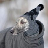 - any clothes for an active mini-greyhound should be comfortable, not restricting movement, it is better to choose hypoallergenic materials;