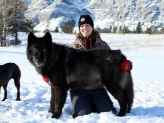 Alaskan Malamutes were also crossed with wolves. Such hybrids can weigh 25–55 kg. Their dimensions are also significantly different. Volamuts are able to live even at home, provided that they are provided with a large fenced area. To exclude attempts to escape through a digging or somehow else, you will have to physically load the dog.
