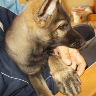 A top may have a straight and scissor bite. At the international level, both of these options are recognized as the norm for the breed. A mandatory feature of any wolf cubs should be a high tail landing. He is very magnificent and long, like a real wolf. You can often see how this tail drops straight down.If emotional arousal sets in, the tail takes on a crescent shape and rises. In most cases, wolf cubs are painted yellow-gray. Occasionally, silver-gray animals can be seen. Lighter than the main part, spots cover the neck, chest and muzzle.