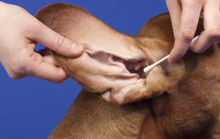Flexible ears must be wiped inside with a cotton swab dipped in a special veterinary lotion.