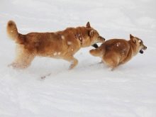 Shikoku - representatives of one of the oldest breeds of Japan. Their homeland is Shikoku Island. Adult dogs at the withers can reach 52 cm.