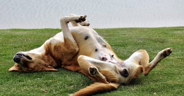 - Subordination. The main feature in the demonstration of the abdomen. Upon contact with a larger or adult animal, the dog gives itself a sniff, lies on its stomach, and then shows it. Often puppies and young animals behave this way, while for some reason they cannot dominate the pack.