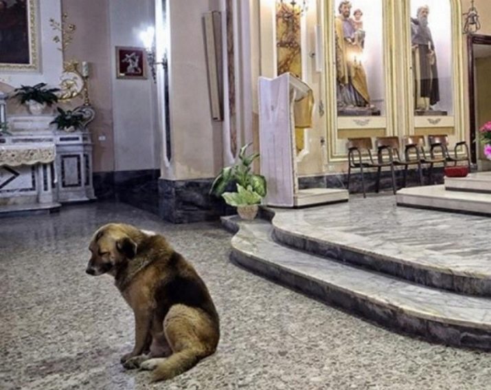 A similar story happened in Italy. An elderly, kind woman named Maria Lochi has been feeding a homeless German shepherd for many years Tommy. The dog always accompanied her to church when a woman went to service. After the death of Mary, the dog continued to come to the temple in the hope of seeing a good woman. He behaved quietly, did not bother anyone, so he was allowed to be among the parishioners.This continued until 2013, until Tommy ended his earthly life.