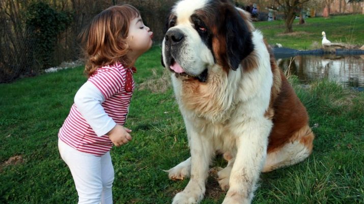- Saint bernard. These huge phlegmatic dogs won't even offend flies. They, like collies, babysit children and are very devoted to their family.