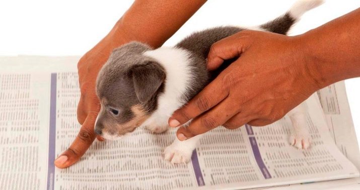 Sit the dog in place after each meal or after sleep. Make sure that for a long time the puppy sits on a diaper and does not leave it. As soon as he has settled the need for the right place, praise him, pet him, treat him to a treat, but do this only after the urination or bowel movement is complete, otherwise the dog will not understand why he was praised.
