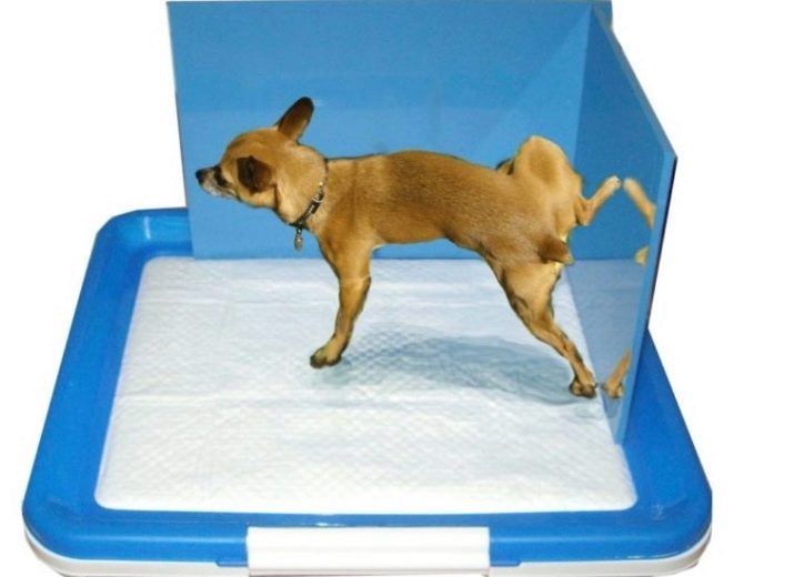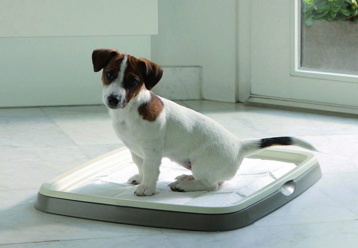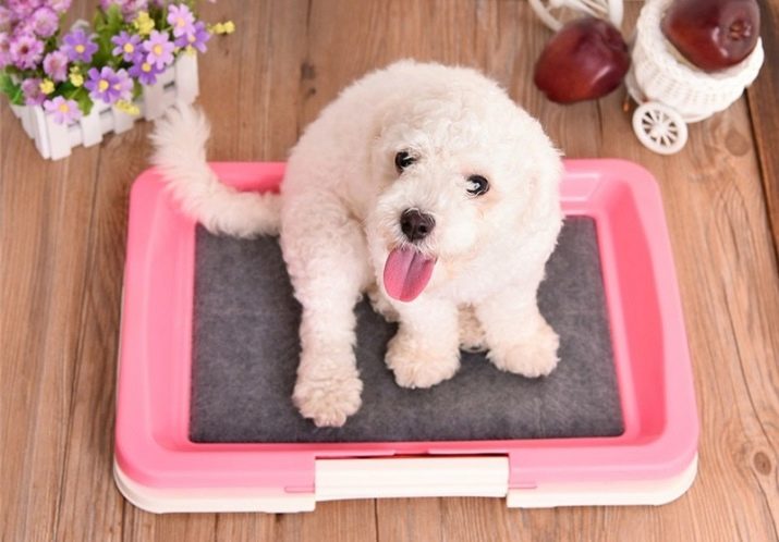 The dog can cope with the need of the house on a newspaper, on a diaper or in a tray with a filler. If the owner's choice fell on a special pot, then this should be a product with low sides. If the pet is a boy, then it is advisable to purchase a special design with a column in the center. As you know, males prefer to urinate near a hill, and for this purpose a tray with a column is needed. For girls, this is not necessary.
