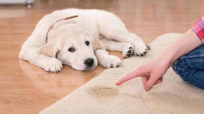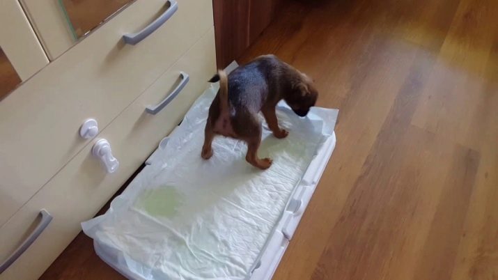 - the puppy whimpers and even squeals a little, especially if he is already accustomed to the diaper, but cannot find it;