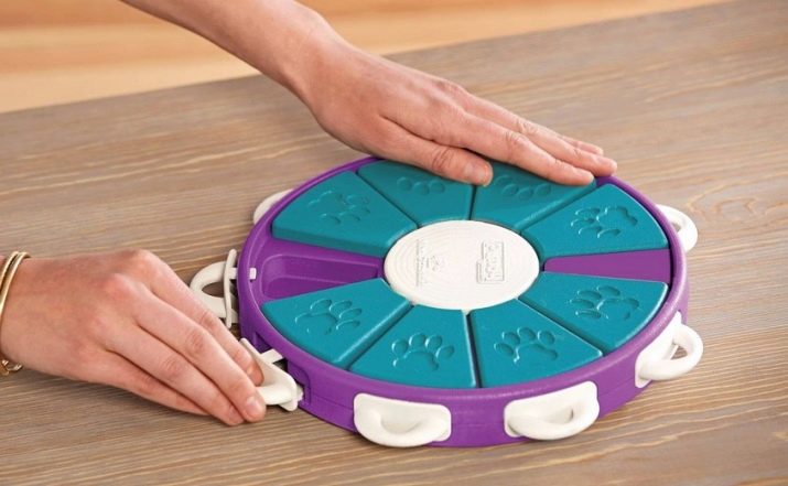 Developers of this company can have different models. Usually they are equipped with a vertical cylinder, which, when rotated, throws out goodies. For it to work, the dog must push it gently.Since the movements of the dog can have different intensities, then impact force must be selected. This takes the dog for a long time and distracts it from the "hooligan" thoughts.