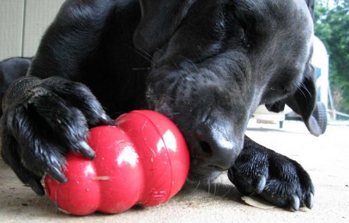 Such a ball refers to simple toys. When the dog rolls it, a crispy food spills out of the ball. The dog understands: to get a yummy one needs to roll the ball, and tries to deploy it in a certain way.