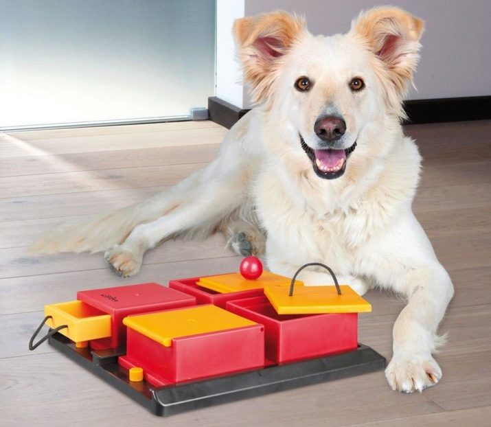 They are equipped with drawers, platforms, holes and other things that make the dog "move his brain." For example, to get a reward, the dog must pull the rope or open the door.