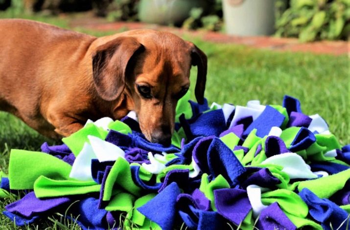 The dog will be happy to look for goodies hidden under the layers of fabric. To begin with, hide them superficially, and then you can complicate the task and bury the delicacy deeper.