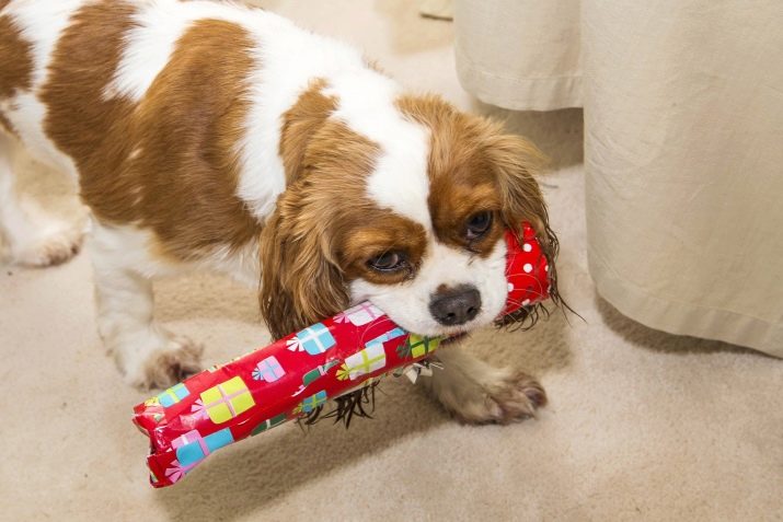 Such a game can be easily made independently. To do this, take your dog’s favorite treat, wrap it in paper and put it in a box. The dog smells the aroma of delicious food and tries to get it. Further, this game can be complicated by adding various "obstacles" in the form of additional wrappers, etc.