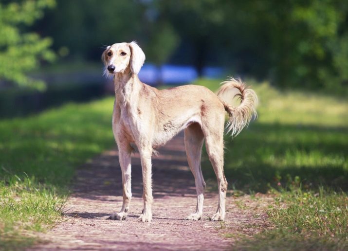 - Saluki. This is a long-legged and fragile animal. It has very slender legs, as well as a fluffy tail and soft fur. The price is quite high (up to 100 thousand rubles) due to the rarity of the breed.